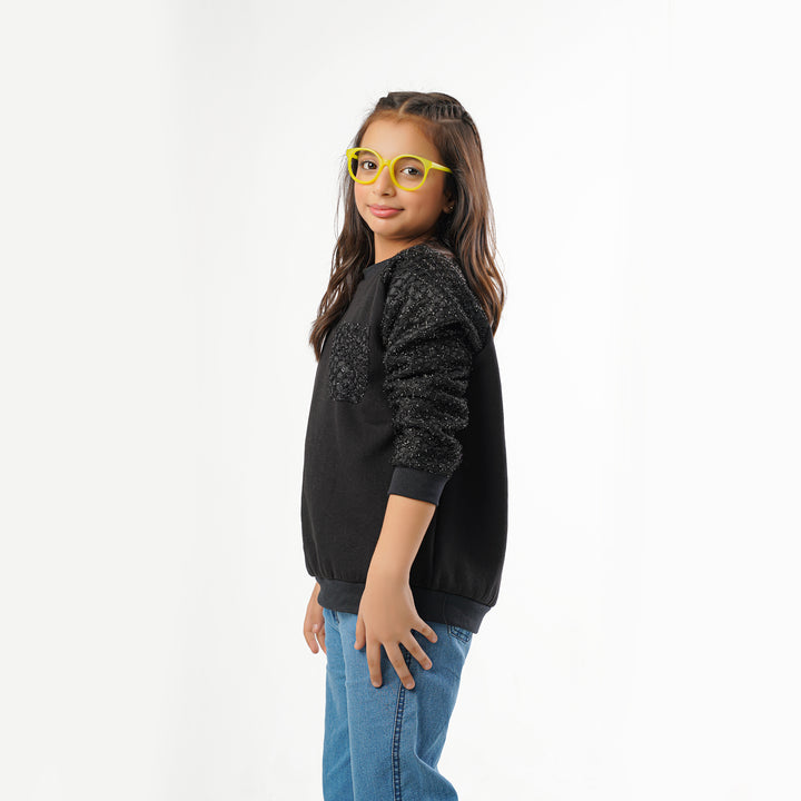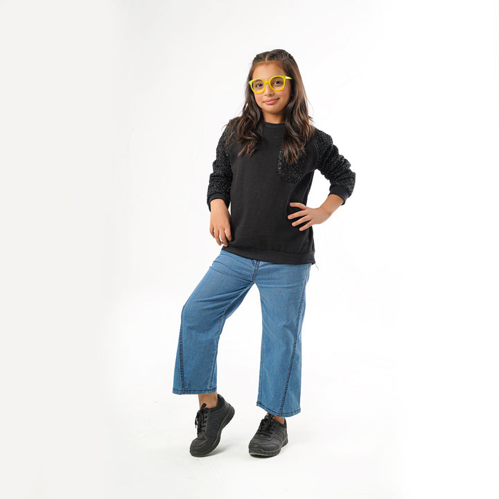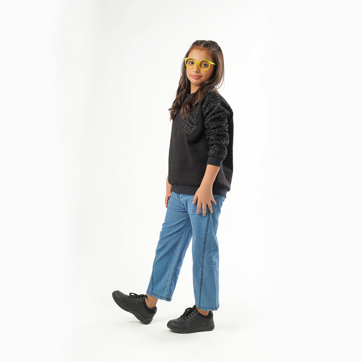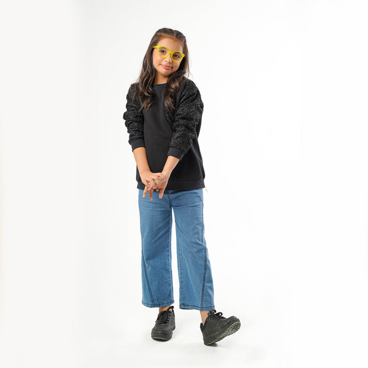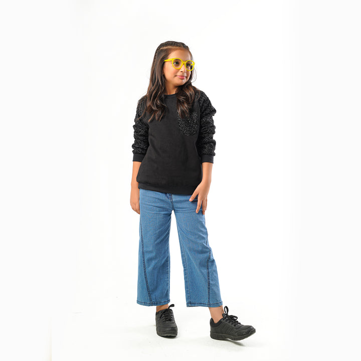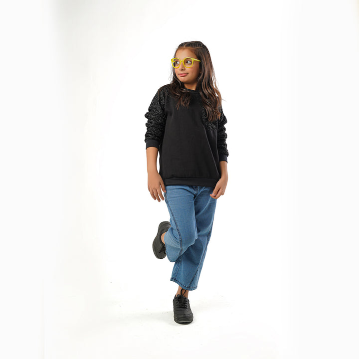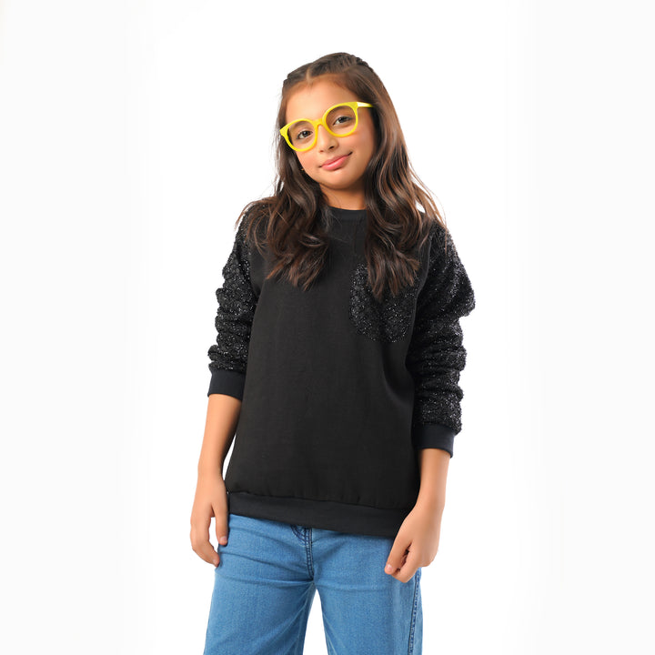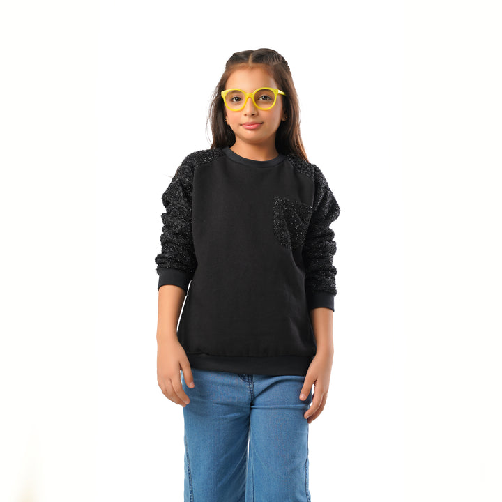 WOOLEN SWEAT SHIRT WITH EMBELLESHED SLEEVES