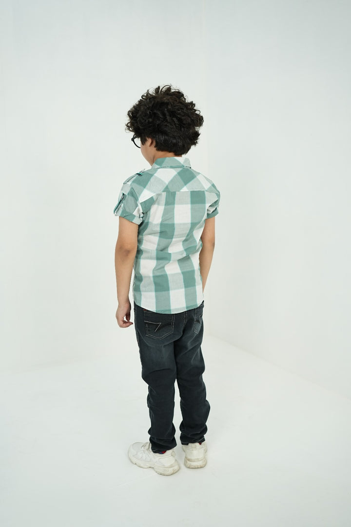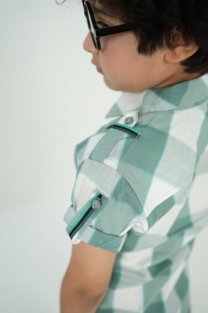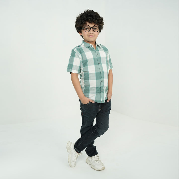 OLIVE AND WHITECHECKED CASUAL SHIRT