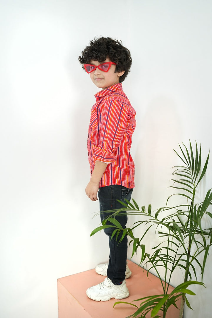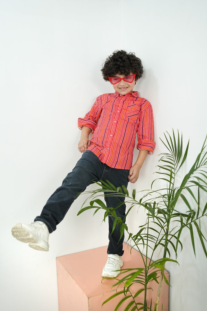 RED AND WHITE STRIPPED CASUAL SHIRT