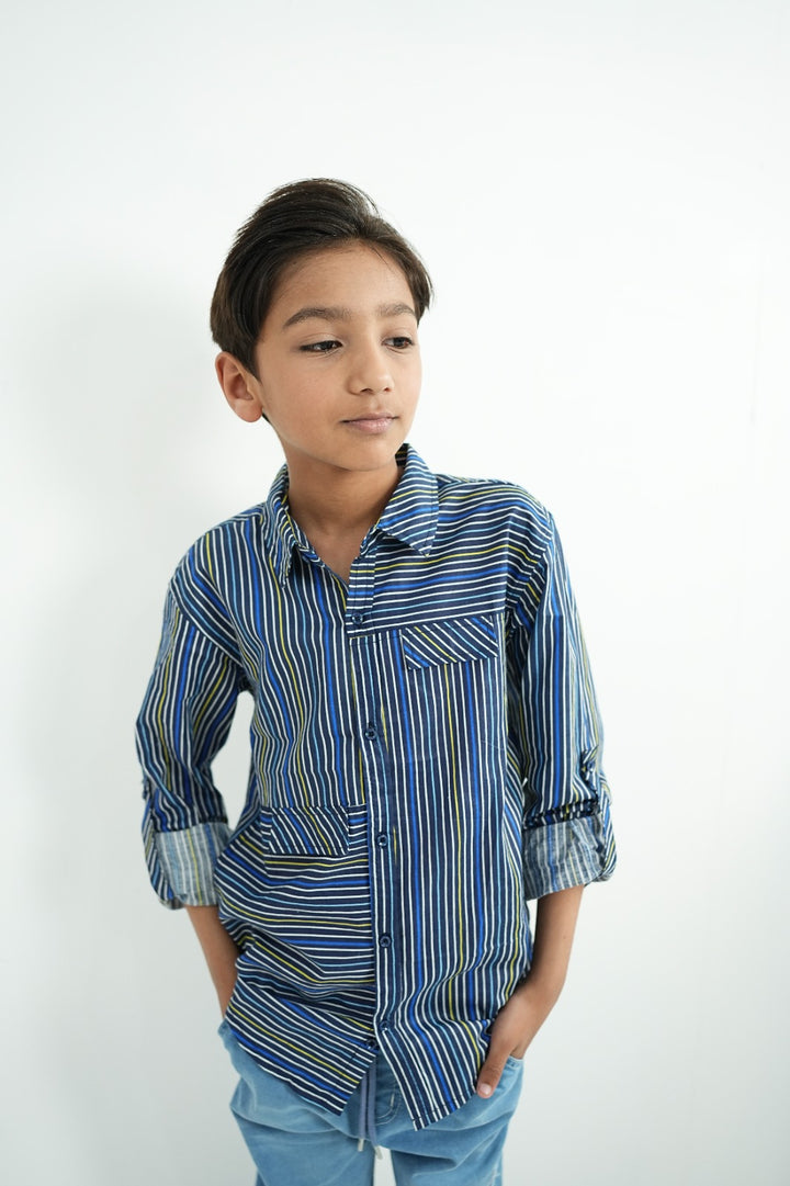 BLUE AND WHITE STRIPPED CASUAL SHIRT