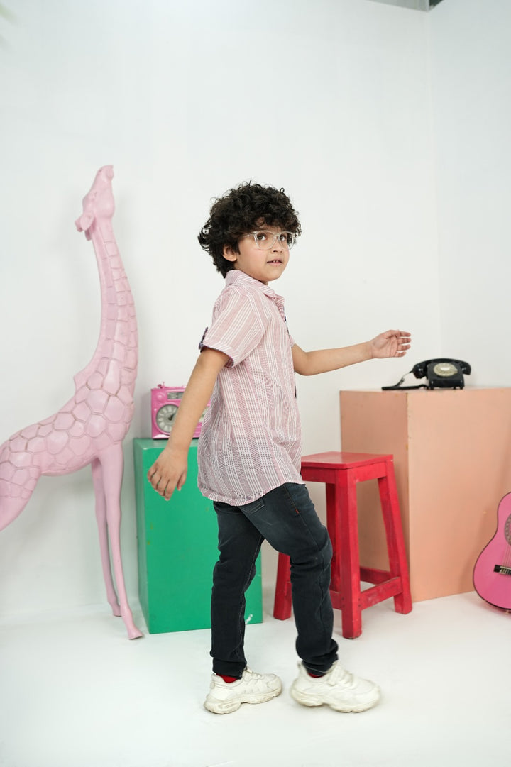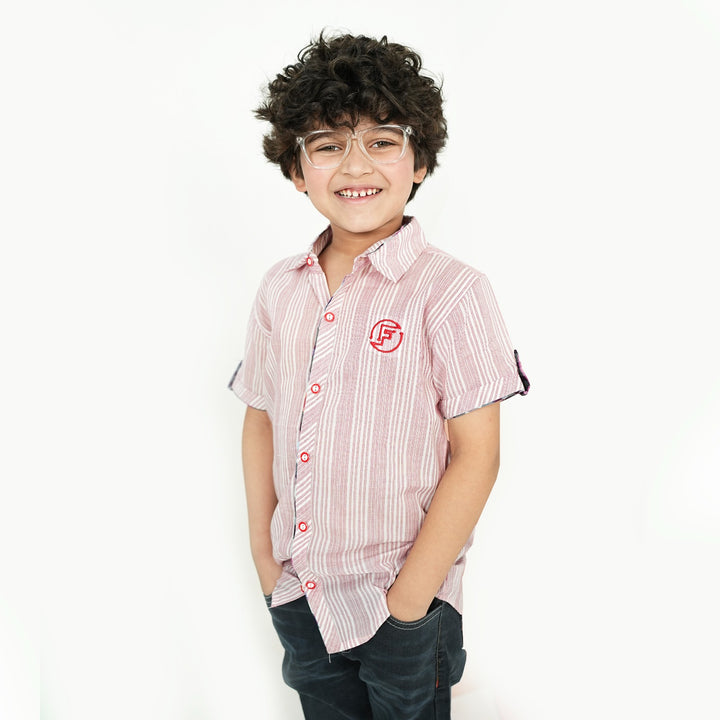 RED AND WHITE STRIPPED CASUAL SHIRT
