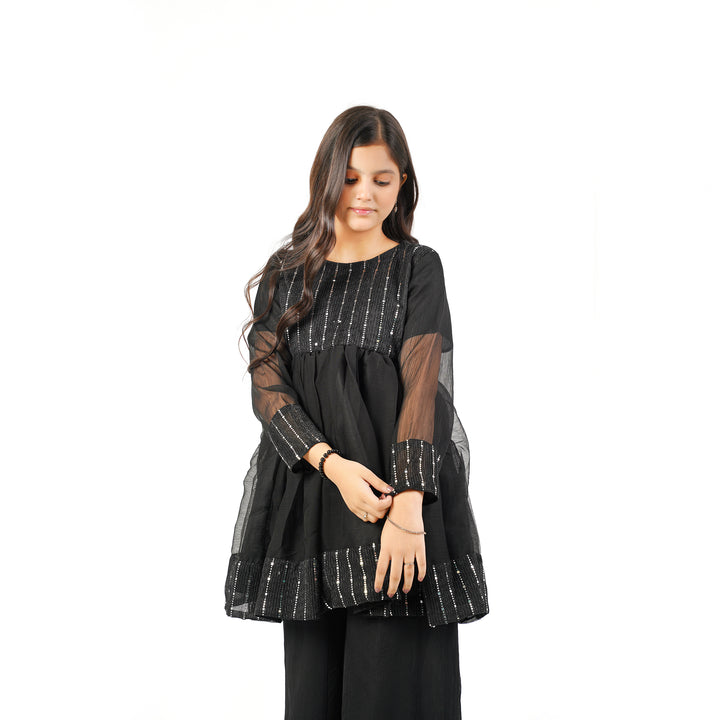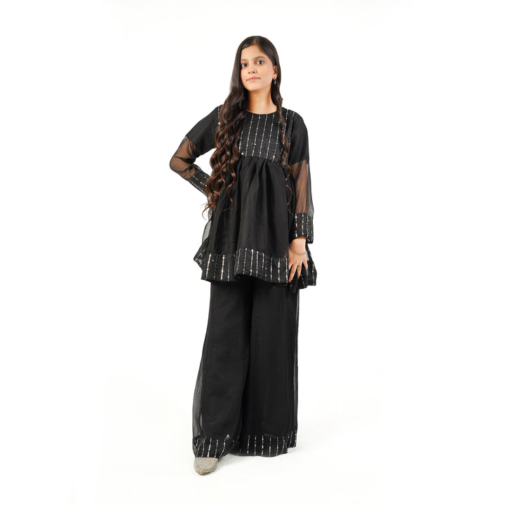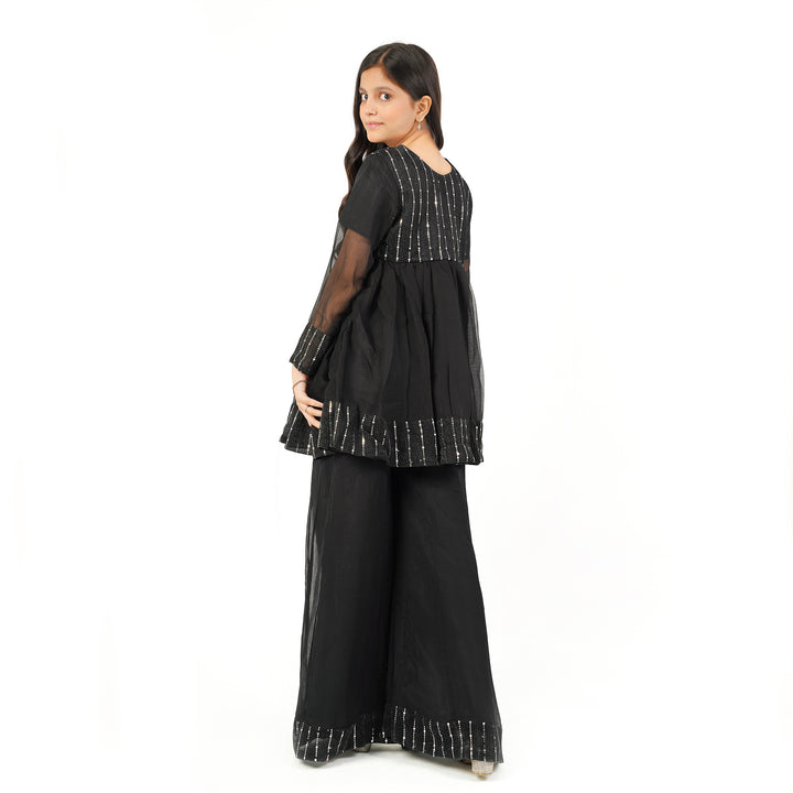 PARTY WEAR BLACK SEQUNCE PEPLUM WITH PLAZO